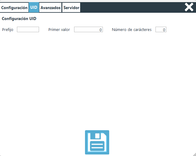 - Campo "Primer valor": En este campo se establecerá el primer UID del sistema. Esto está pensado para sistemas que ya tienen una trazabilidad establecida y desean continuar con la numeración existente.