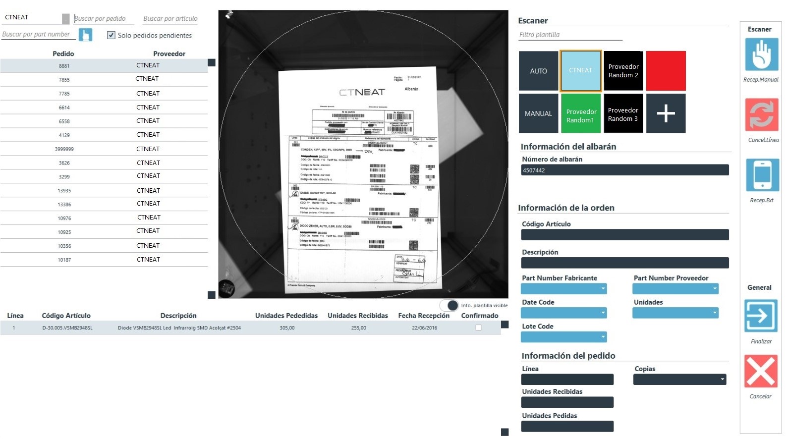 - Reconocimiento finalizado: El albarán ha sido reconocido y los campos de lectura se han efectuado correctamente.