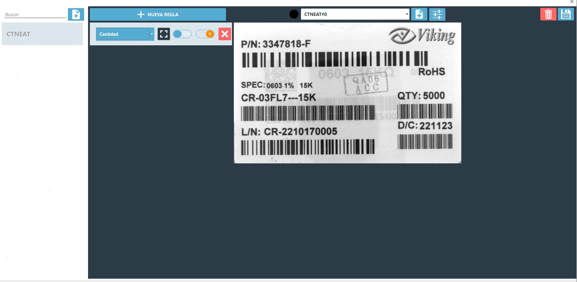 - Utiliza el selector número 6 para indicar si se trata de un código de barras o un OCR (reconocimiento óptico de caracteres), es decir, texto.