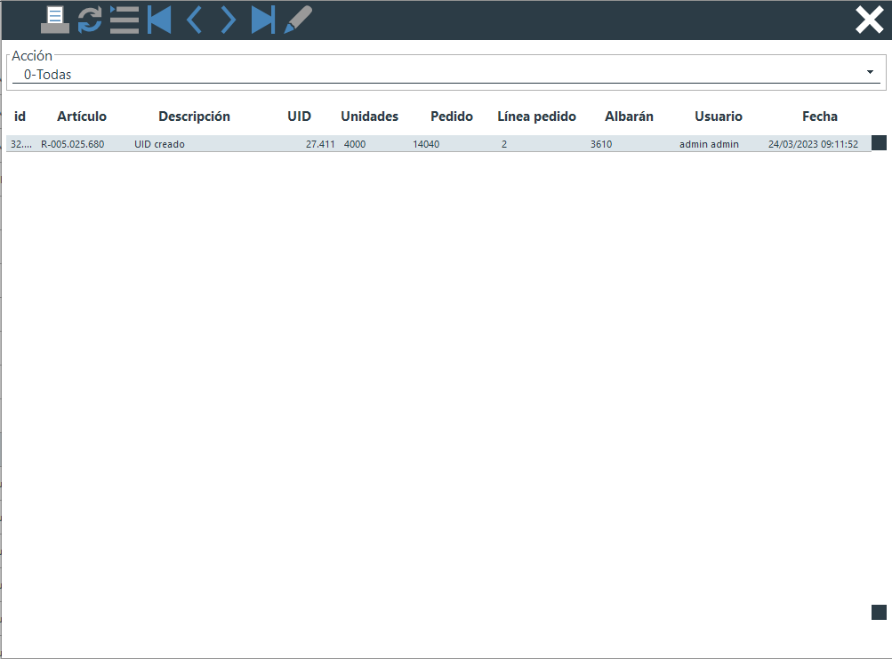 - Se mostrará una tabla en pantalla con todos los eventos históricos del UID (como se muestra en la imagen V.B.2).