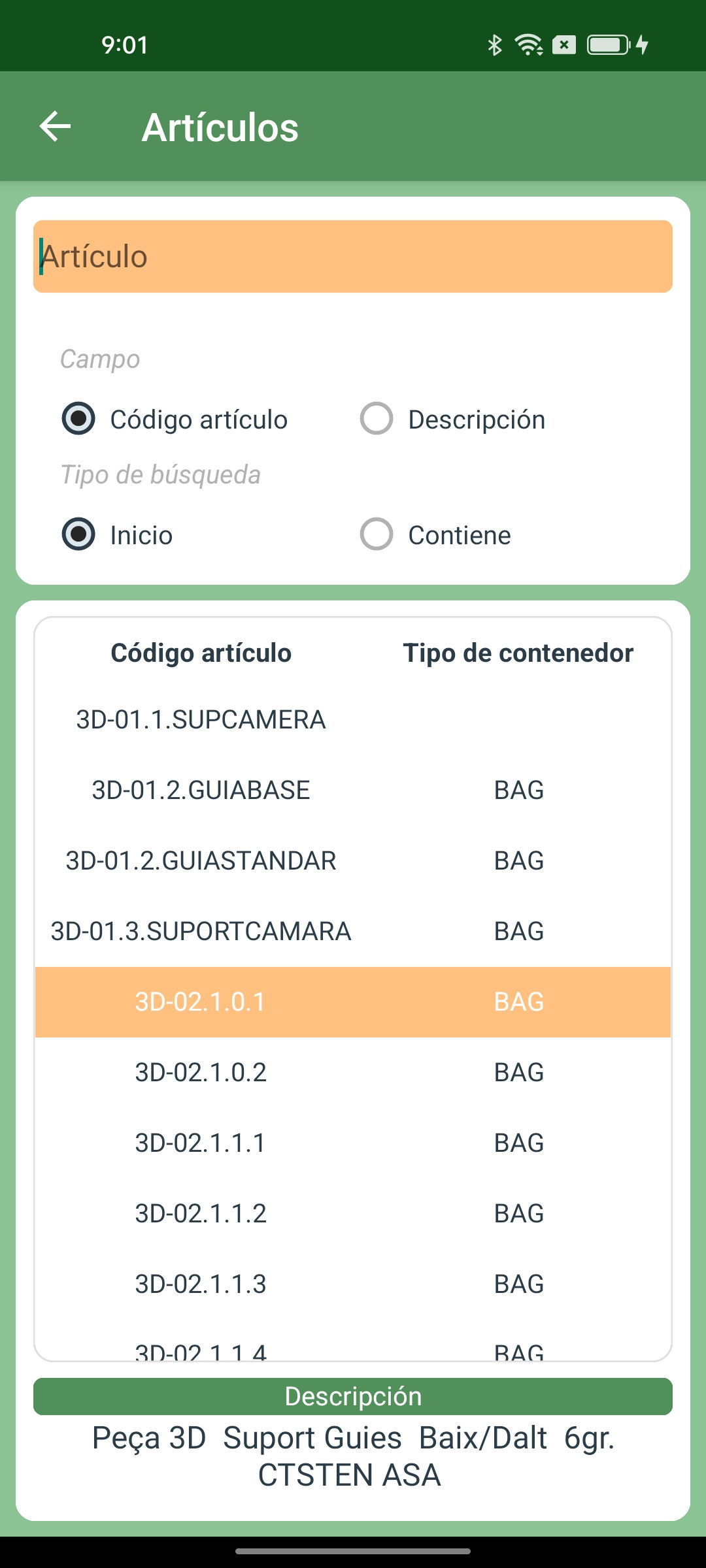 El componente extra de este módulo es la gestión del almacén mediante una aplicación móvil, que proporciona una manera más ágil y eficiente de manejar las operaciones del almacén. Las funcionalidades incluyen: