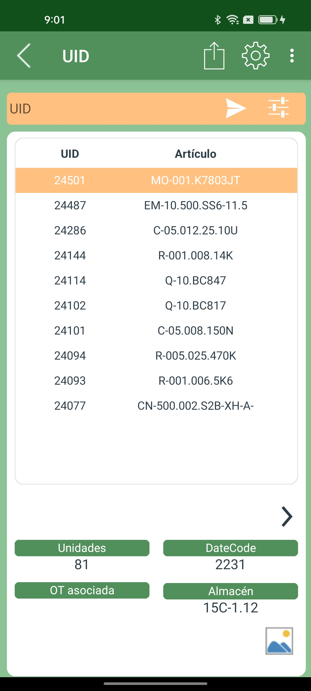 Introducción de Material: Permite introducir material de forma rápida y precisa, asegurando que cada UID se registre correctamente en su posición designada.