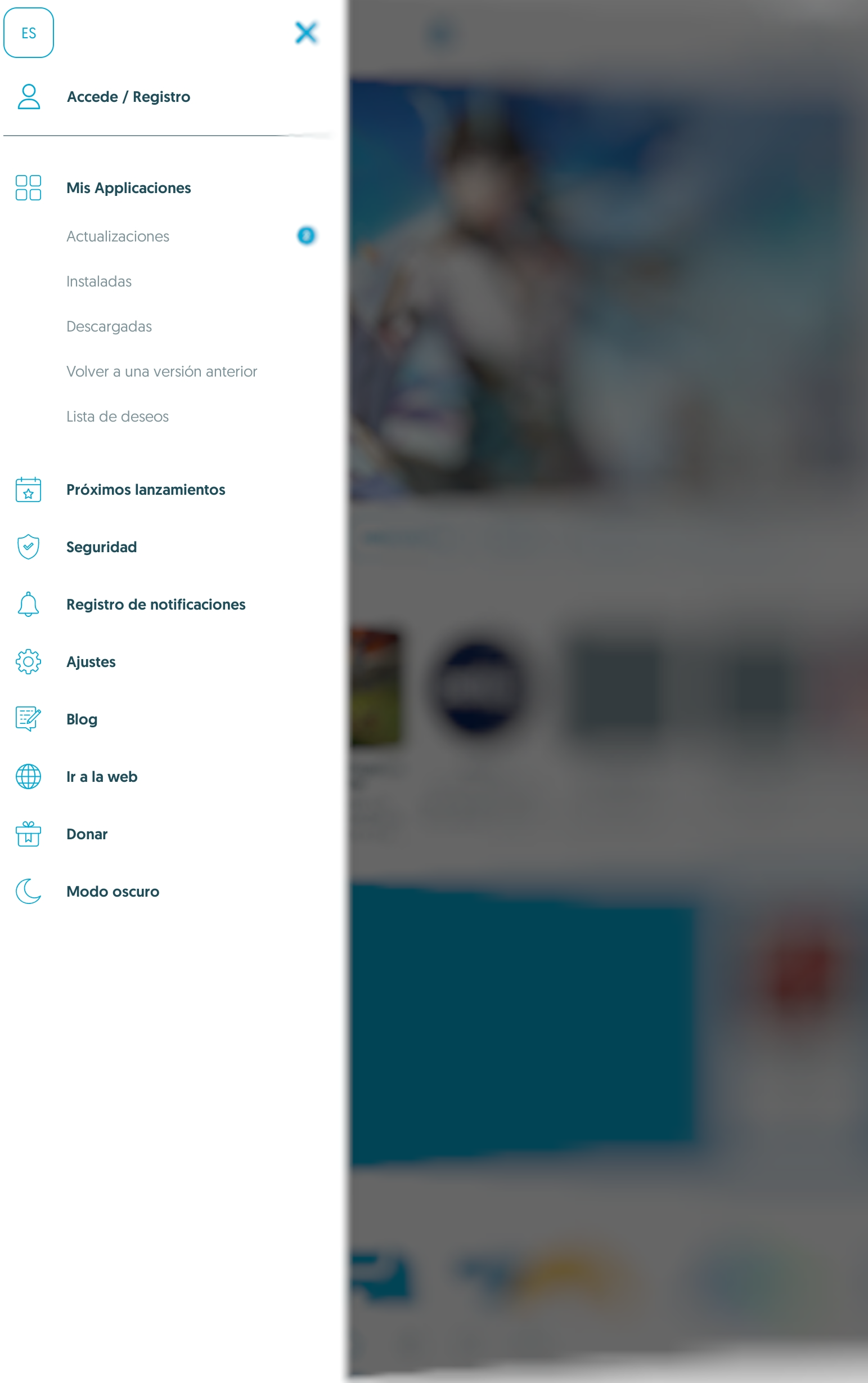 Al ingresar a la aplicación "Uptodown", deberás desplegar el menú ubicado en la parte superior izquierda.
