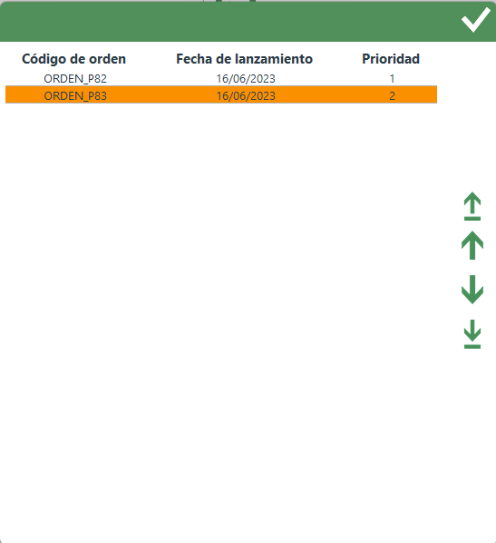 - Ordenar: control utilizado para ordenar las órdenes de trabajo según la prioridad deseada.