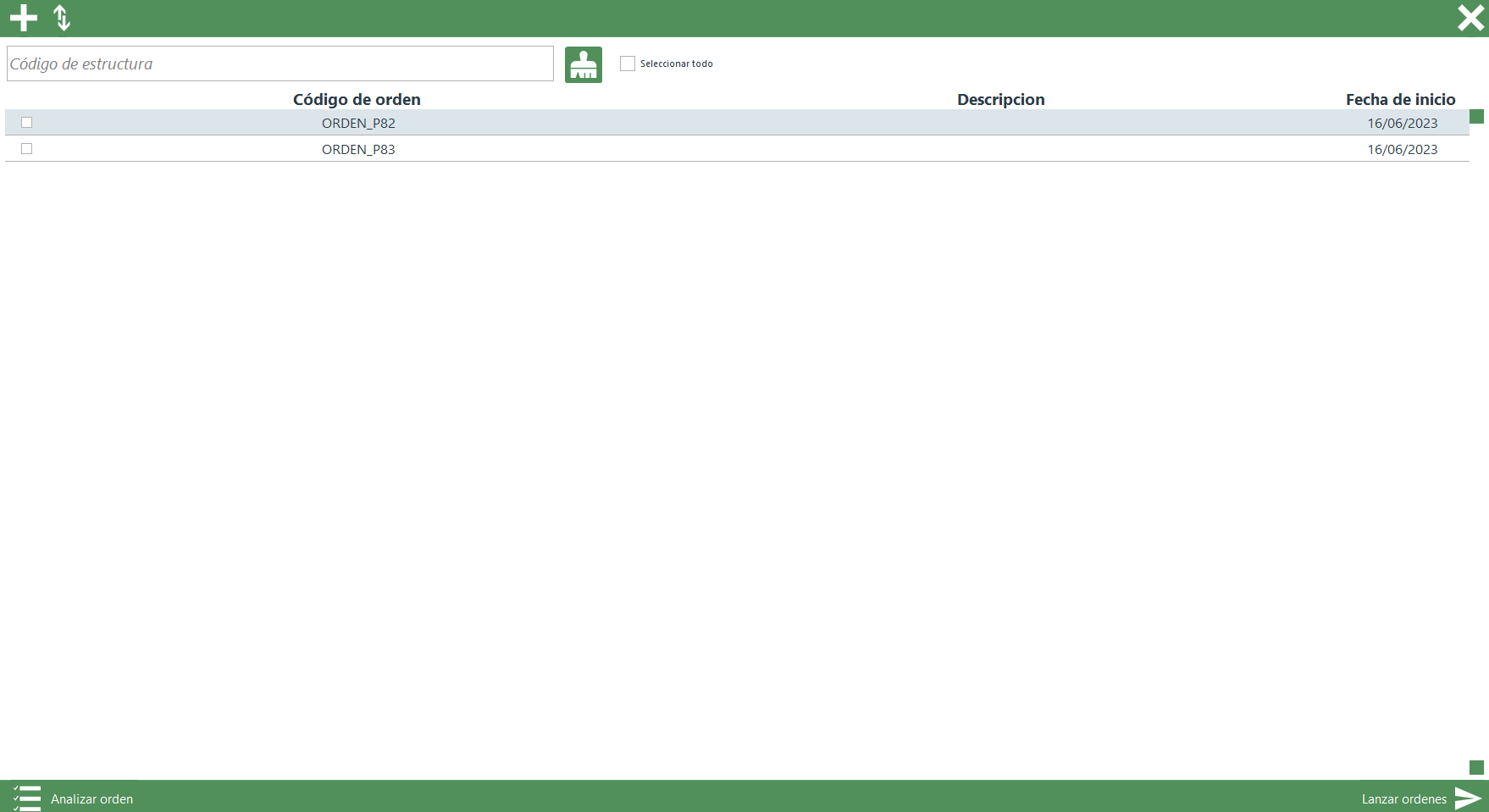 - Lanzar orden: control utilizado para lanzar las órdenes seleccionadas de la lista.