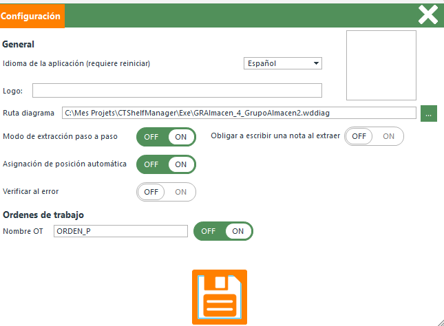 - Extracción paso a paso: Si está activado, el sistema al extraer una orden de trabajo proporcionará únicamente el siguiente contenedor de cada artículo de la orden.