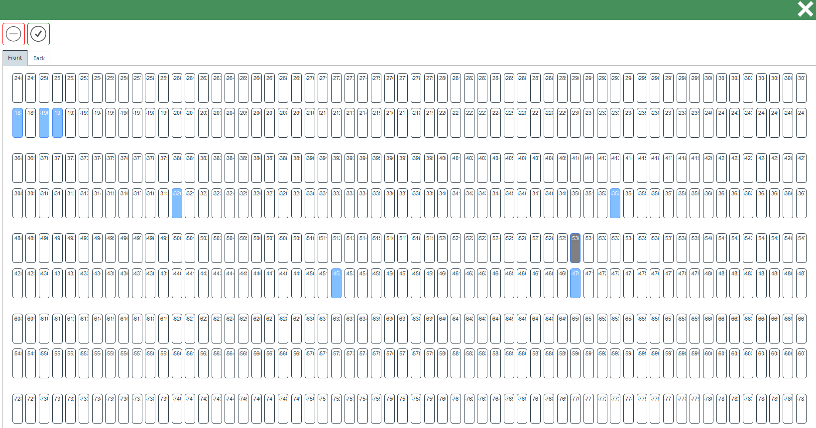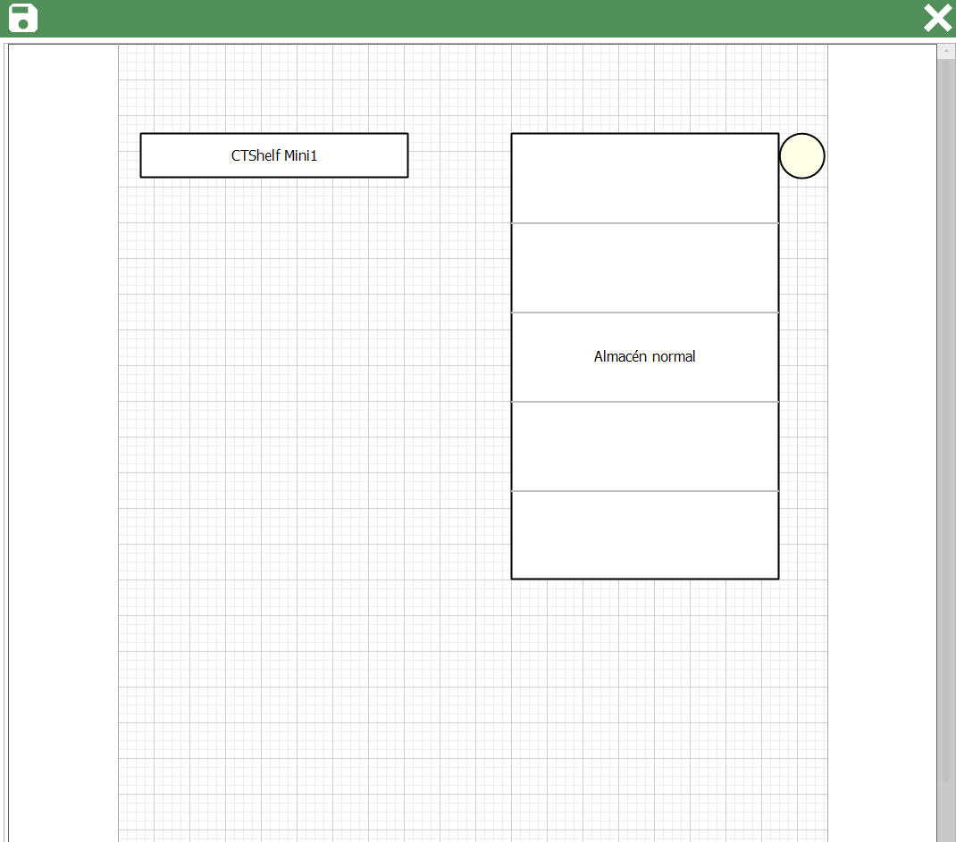En la ventana del editor de módulo individual, se representarán todas las ubicaciones que forman parte del módulo. Si una ubicación está vacía y no contiene contenedores, se mostrará en color azul. Por otro lado, si una ubicación está desactivada, se representará en color gris. Esta representación visual te permite identificar rápidamente qué ubicaciones están ocupadas y cuáles están disponibles en el módulo.