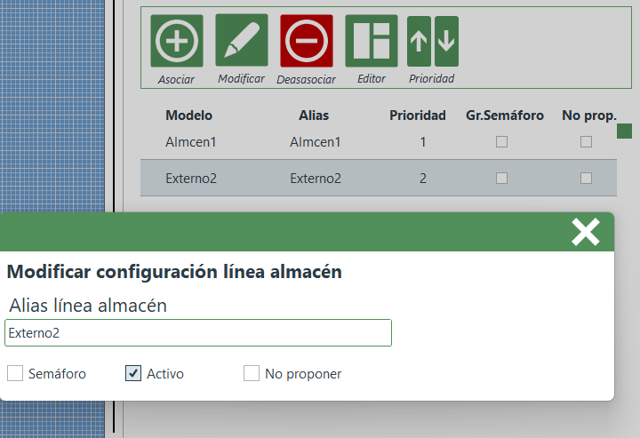 Imagen VI.C.3: Ventana editora módulos de almacen del grupo de almacenes