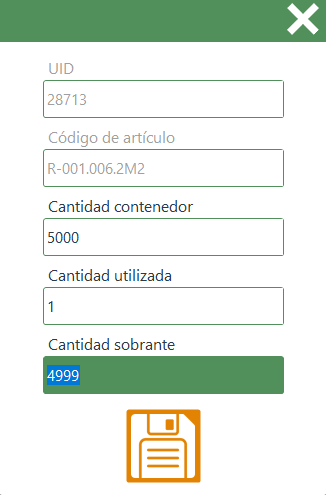 - UID confirmar: Campo donde se introduce el UID del contenedor que se desea introducir.