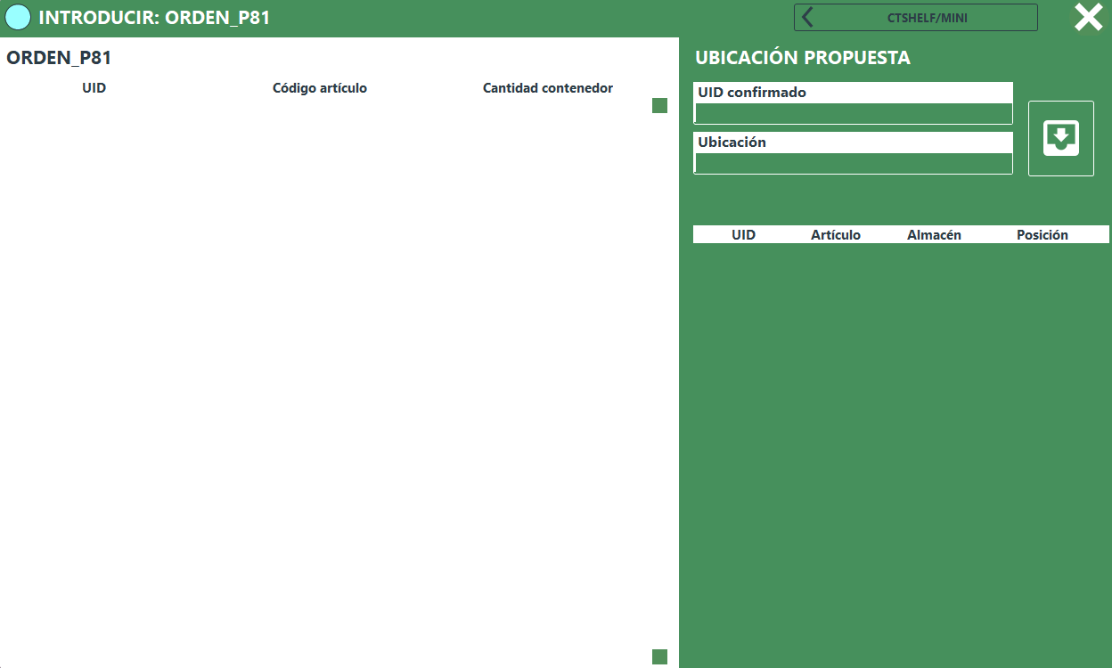 Introducir orden de trabajo en almacén CTShelf