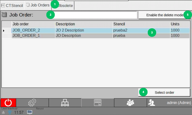 Las órdenes de trabajo se eliminan automáticamente del sistema una vez que se seleccionan para comenzar la fabricación. Sin embargo, el sistema también permite eliminar las órdenes de trabajo que no se han iniciado. Sigue estos pasos:
